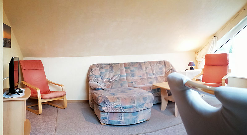 Die Wohnung befindet sich im Dachgeschoss. Sie verfügt über Radio, TV, W-LAN und einen eigenen Parkplatz.