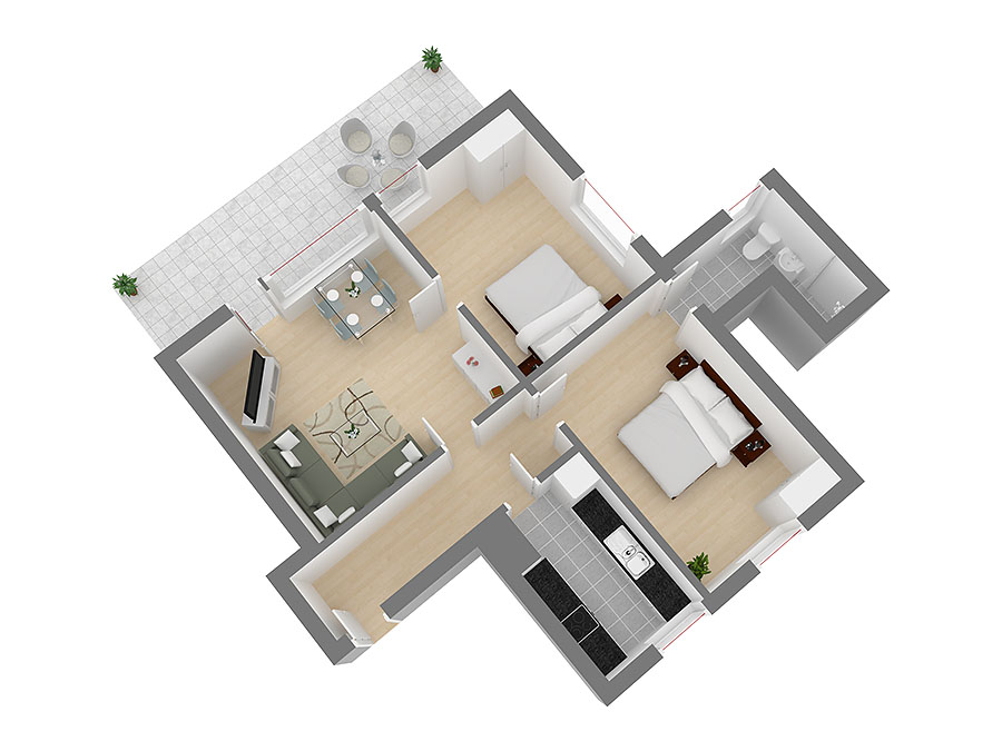 Die Wohnung hat eine große Terrasse Richtung Süden.